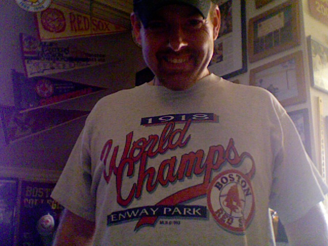 Although 2004 and 2007 were beyond belief, they didn’t change how I want each season to end. No matter what place the Sox are in, no matter how many players are injured, no matter what the score is, I always want the Sox to win the World Series. The only difference now is that if they Sox don’t make the playoffs or lose in the playoffs, I can look at pictures and watch videos from ’04 and ’07 instead of agonizing over the “how come they keep doing this?” questions all winter long. This shirt may not be as much of a joke as it was when I got it, but it takes nothing away from my first love. And loving the Sox will never get old…